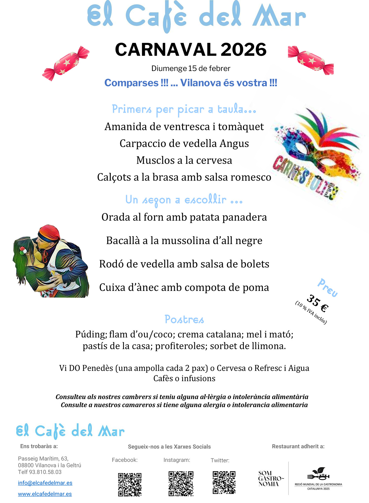 (*)  s’efectuarà servei de sopar per a grups amb reserva prèvia